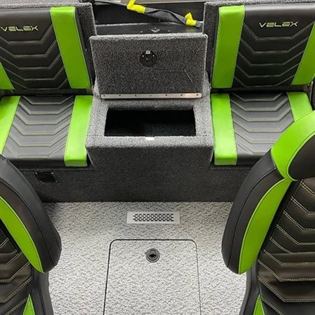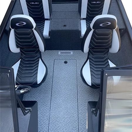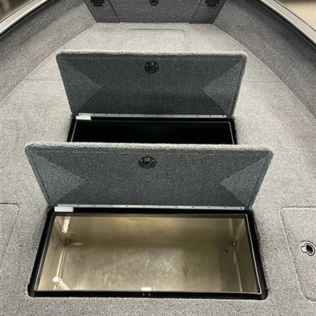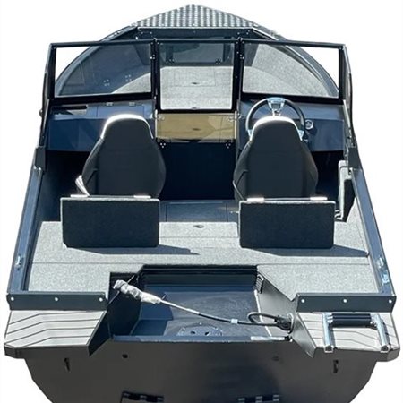 Barque de pêche alu très spacieuse et confortable avec de nombreux rangement, coffre à canne (jusqu'à 2.7m), vivier