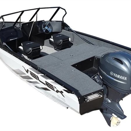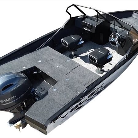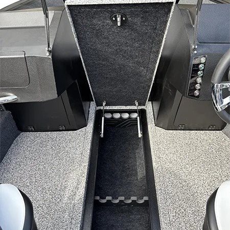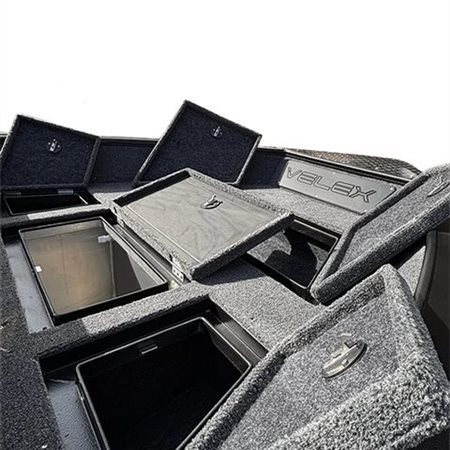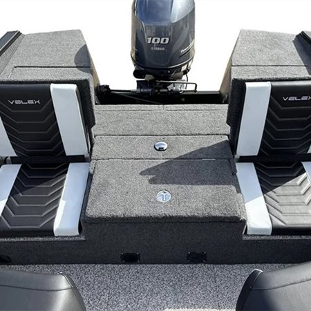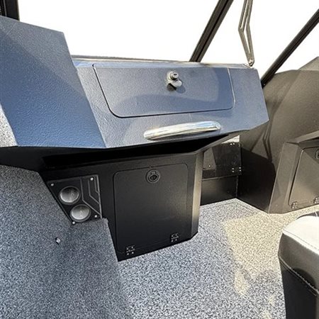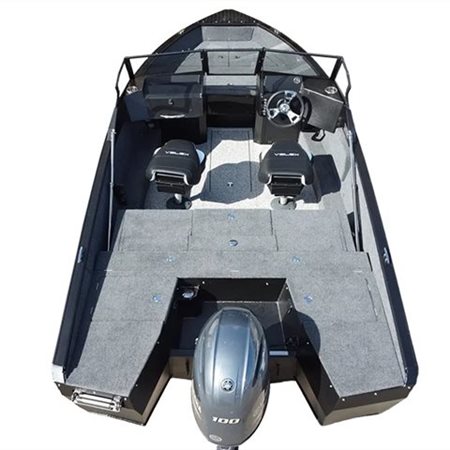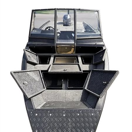 Barque de pêche alu très spacieuse et confortable avec de nombreux rangement, coffre à canne (jusqu'à 2.7m), vivier 70 litres